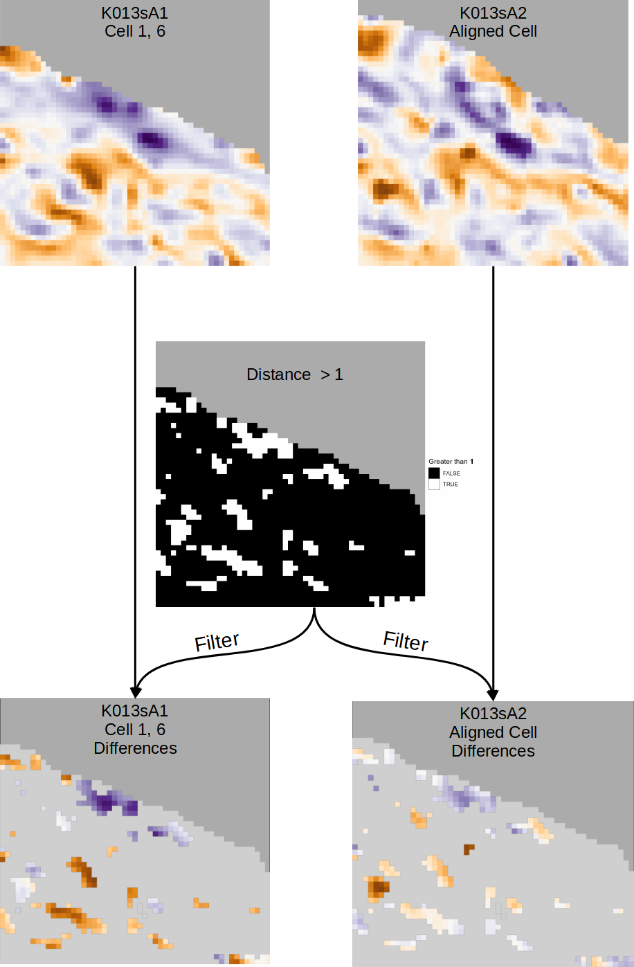 Separate aligned cells into similarities and differences